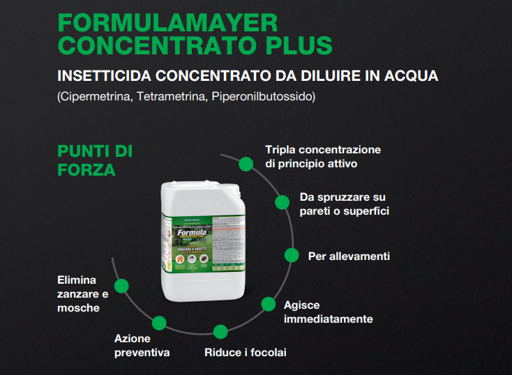 Il nostro Formulamayer Concentrato Plus si conferma un alleato indispensabile per eliminare mosche e zanzare: i principali vettori del virus.